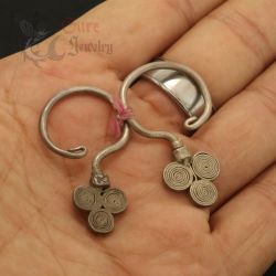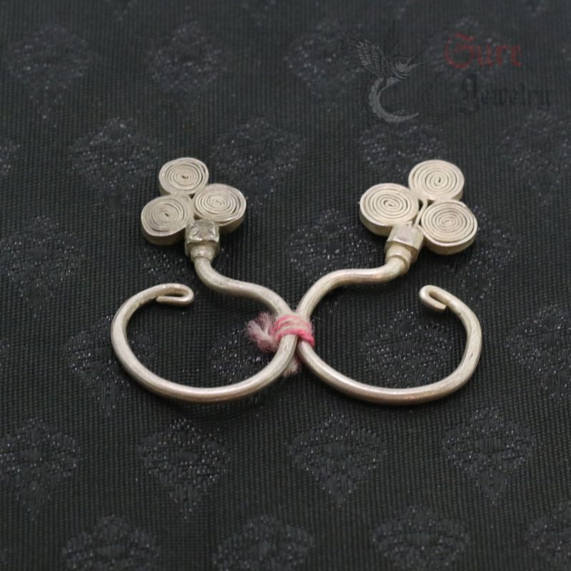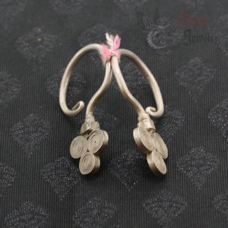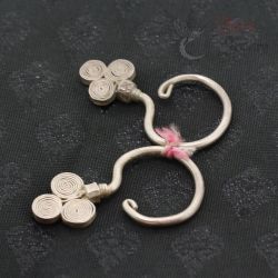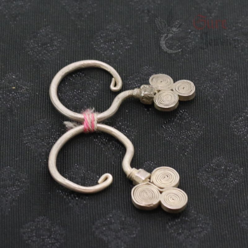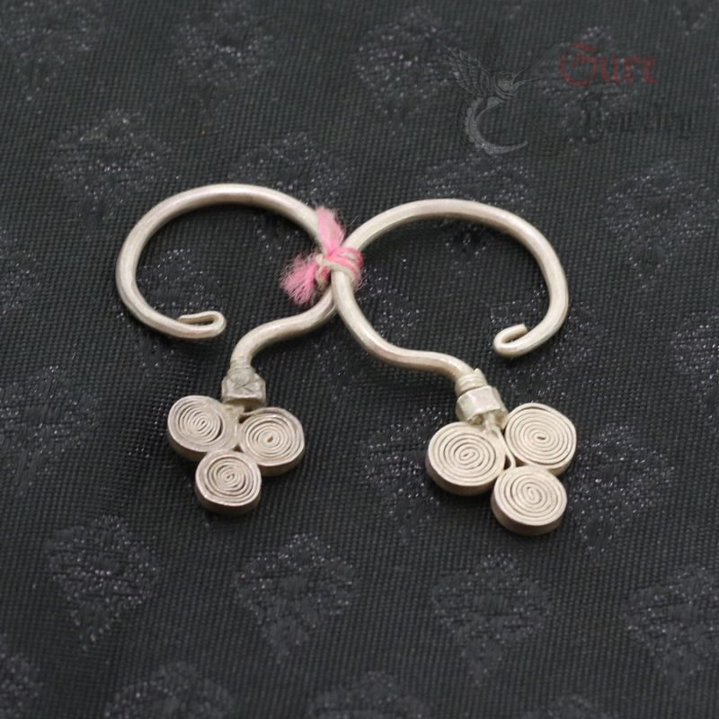 ANTIQUE SILVER YAO EARRINGS WITH SPIRAL BRANCH DESIGN – NORTHERN THAILAND / LAOS REGION
