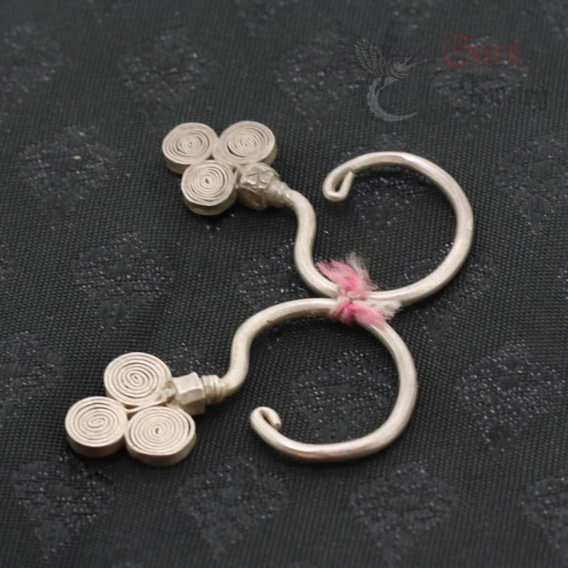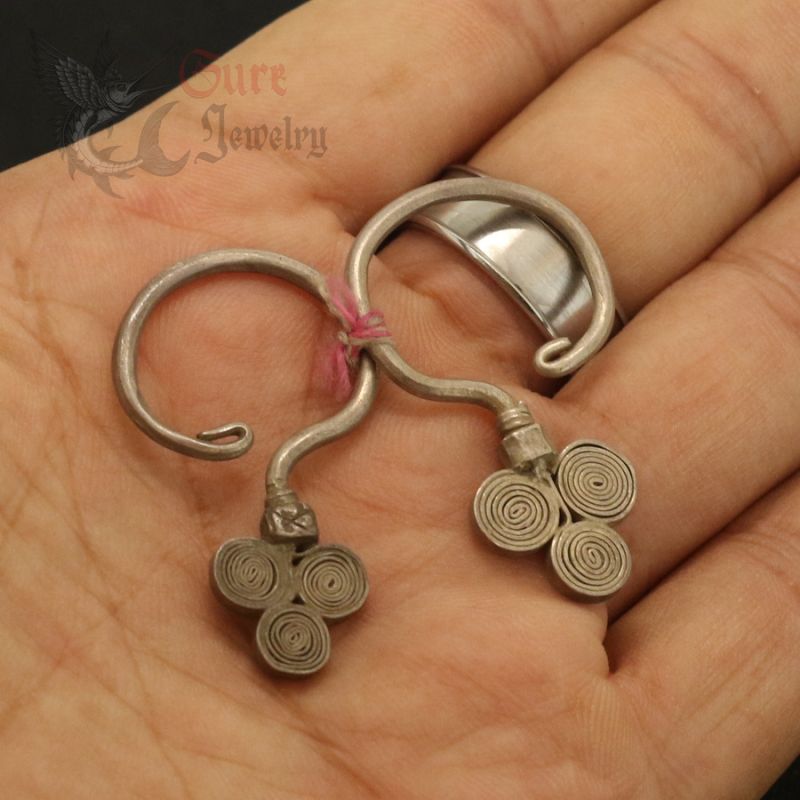 WITH AN ELEGANT CURVED HOOK AND BALANCED PROPORTIONS (L 40MM × W 20MM, WEIGHT 9.92G), THIS PAIR REMAINS FULLY INTACT, WEARABLE, AND IN VERY GOOD CONDITION FOR ITS AGE. SUCH AUTHENTIC, HANDCRAFTED TRIBAL PIECES ARE INCREASINGLY RARE, MAKING THEM DESIRABLE BOTH AS ETHNOGRAPHIC JEWELRY AND AS COLLECTIBLE ARTIFACTS OF SOUTHEAST ASIAN HERITAGE.