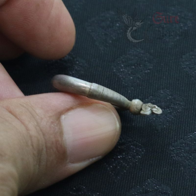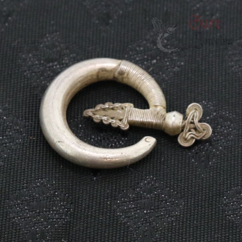 THIS AUTHENTIC ANTIQUE YAO HILL TRIBE EARRING ORIGINATES FROM THE GOLDEN TRIANGLE REGION—AN AREA SPANNING NORTHERN THAILAND, LAOS, BURMA (MYANMAR), AND SOUTHWEST CHINA. HANDCRAFTED DURING THE EARLY TO MID-20TH CENTURY, THIS EARRING FEATURES THE DISTINCTIVE BENT ARROW OR SPEARHEAD DESIGN, A FORM DEEPLY ROOTED IN YAO AND RELATED HILL TRIBE SILVER TRADITIONS.