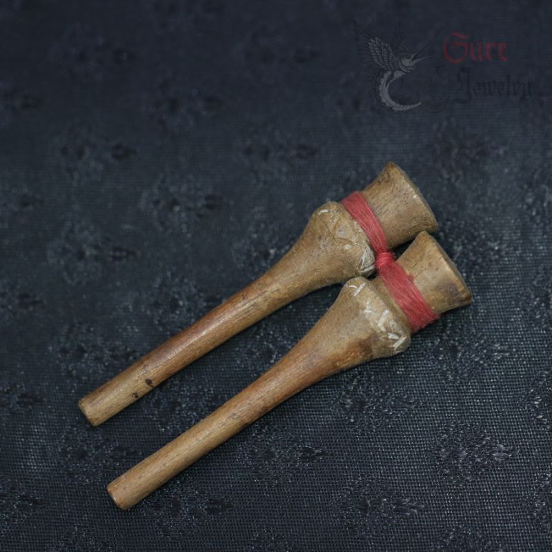 RARITY: SCARCE SURVIVING EXAMPLE OF LONG KAREN WOODEN EAR PLUGS