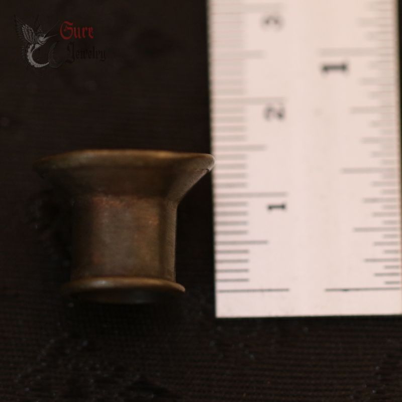 CAREFULLY CRAFTED BY A TRIBAL SILVERSMITH USING TRADITIONAL METHODS, THIS SILVER EAR PLUG IS SHAPED AND POLISHED ENTIRELY BY HAND. MELTED SILVER IS CAST & HAMMERED INTO FORM, THEN FILED, ENGRAVED, OR FLARED TO FIT COMFORTABLY THROUGH STRETCHED EARLOBES. THE SURFACE BEARS THE SUBTLE MARKS OF HAND TOOLING, EVIDENCE OF ITS ARTISANAL ORIGIN.