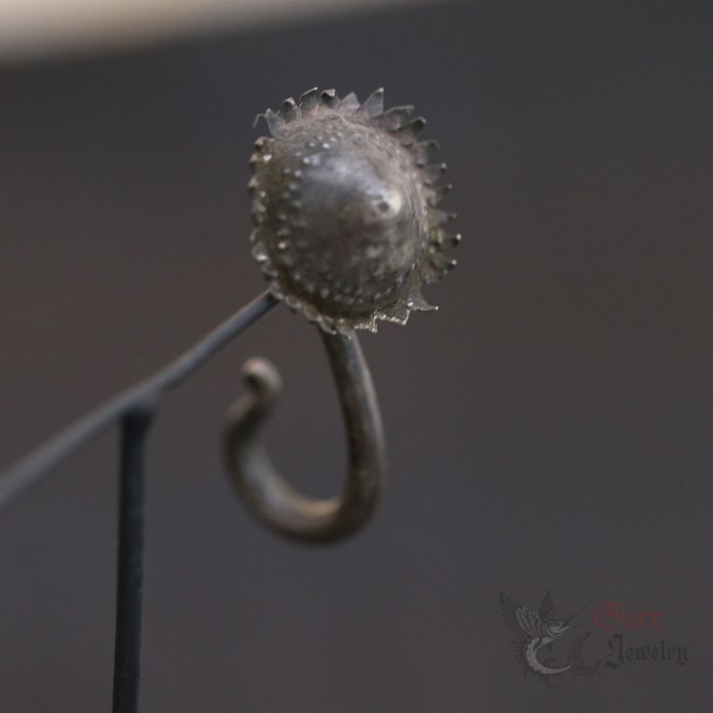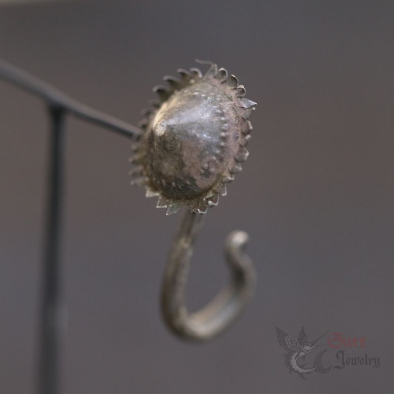 Across the uplands of mainland Southeast Asia, long hook earrings were worn as everyday adornment and markers of identity. The floral terminal reflects local aesthetic language—organic forms shaped by hand.