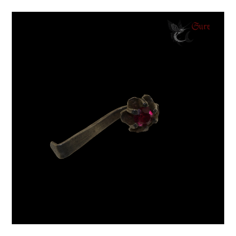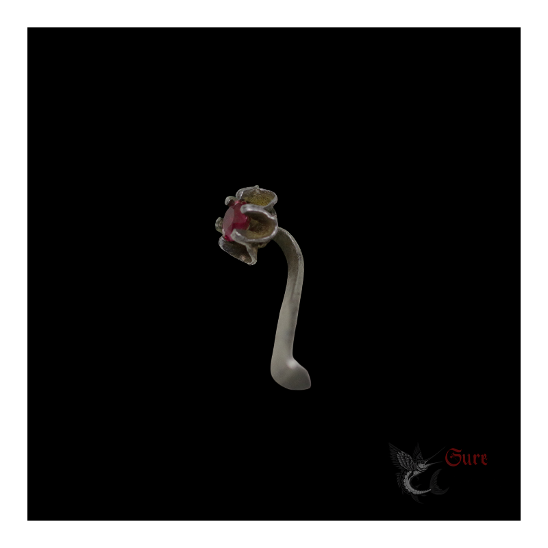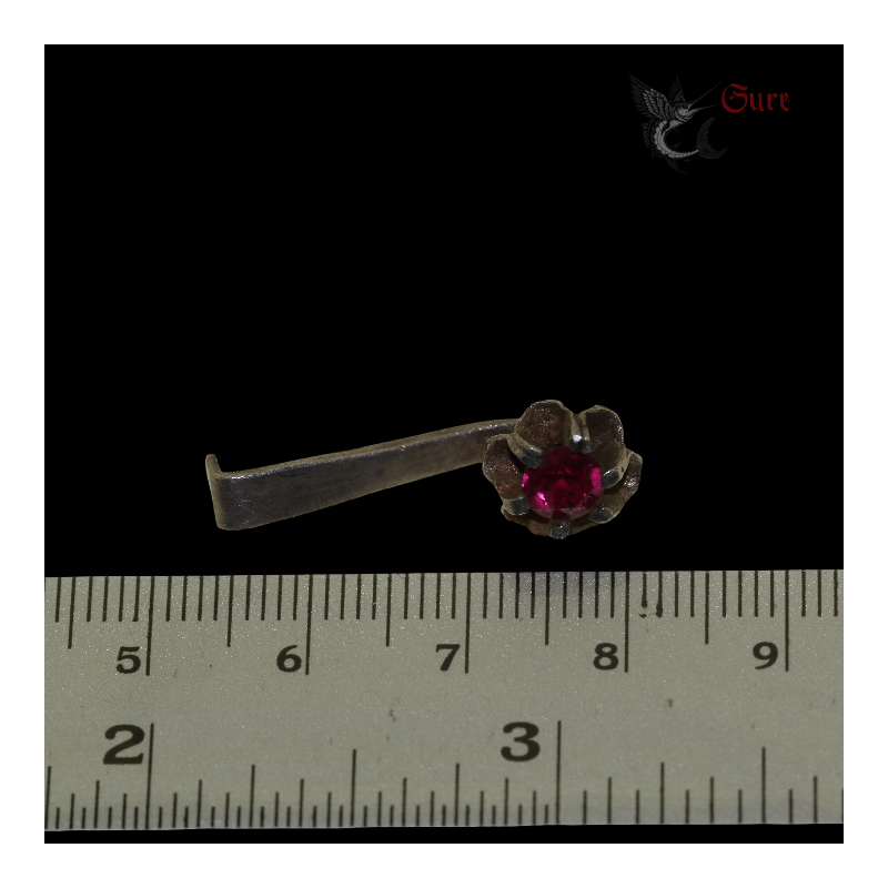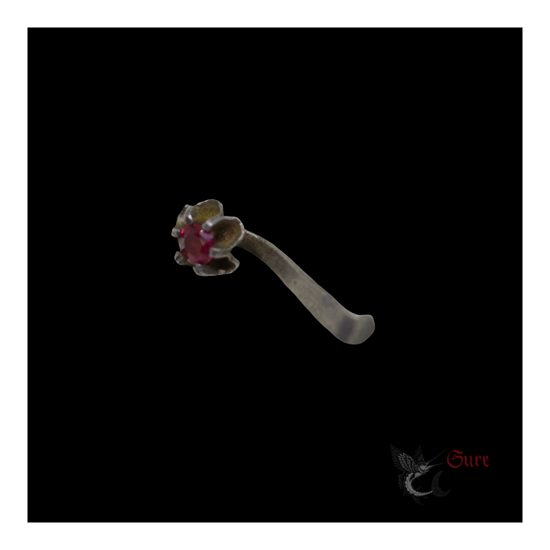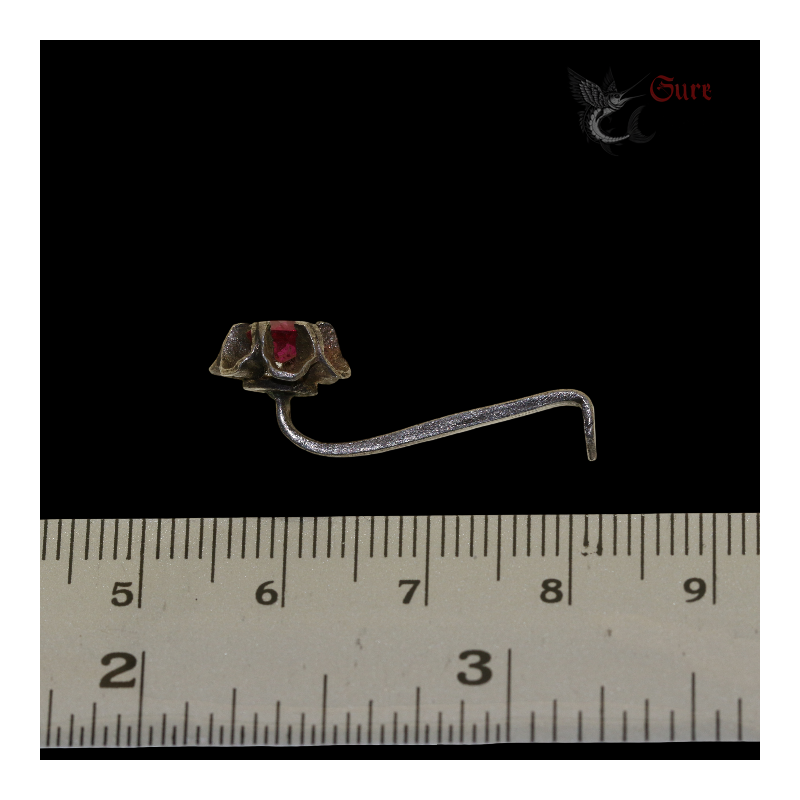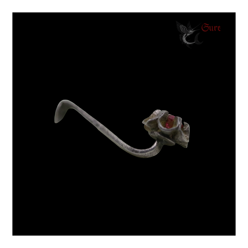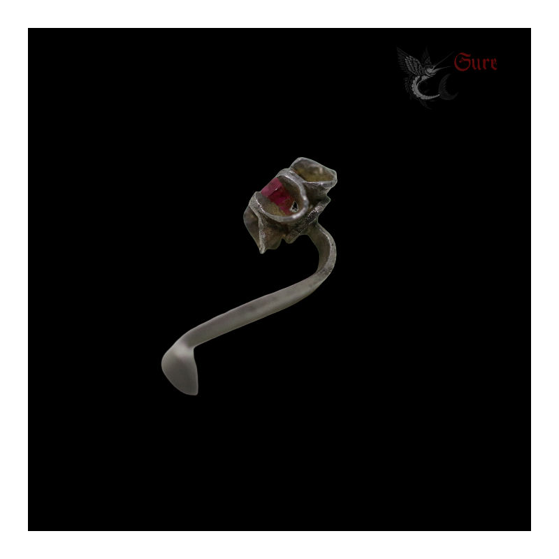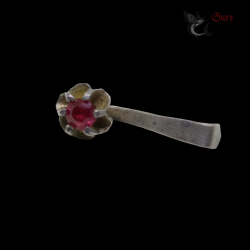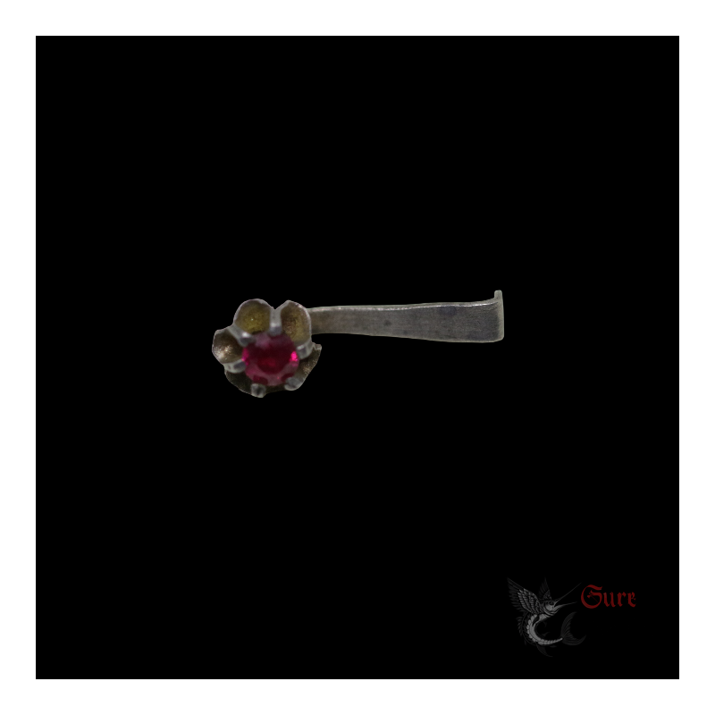 Antique Northern Vietnamese Silver Earring with Red Stone